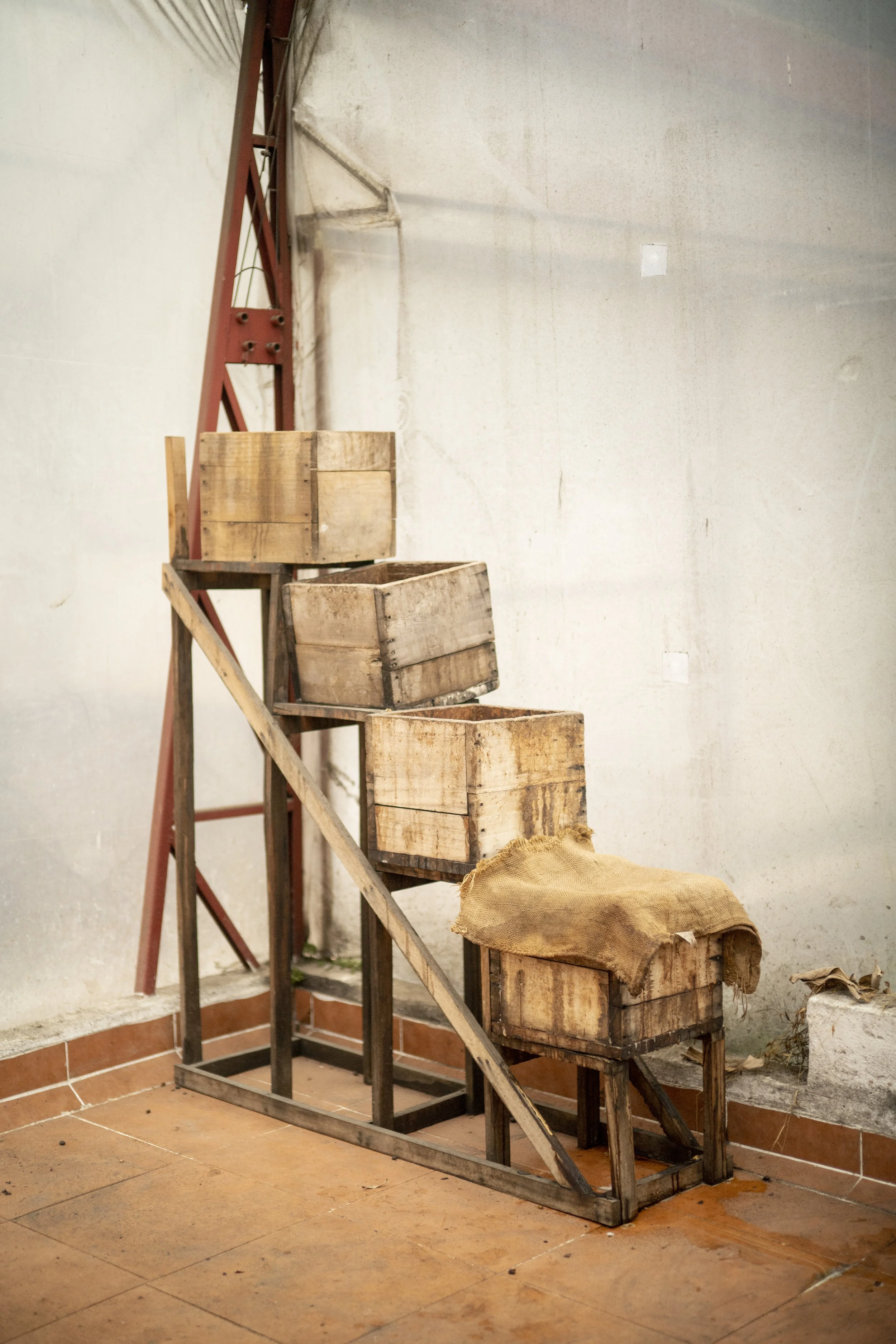 Cajas para fermentar cacao en Aquiares